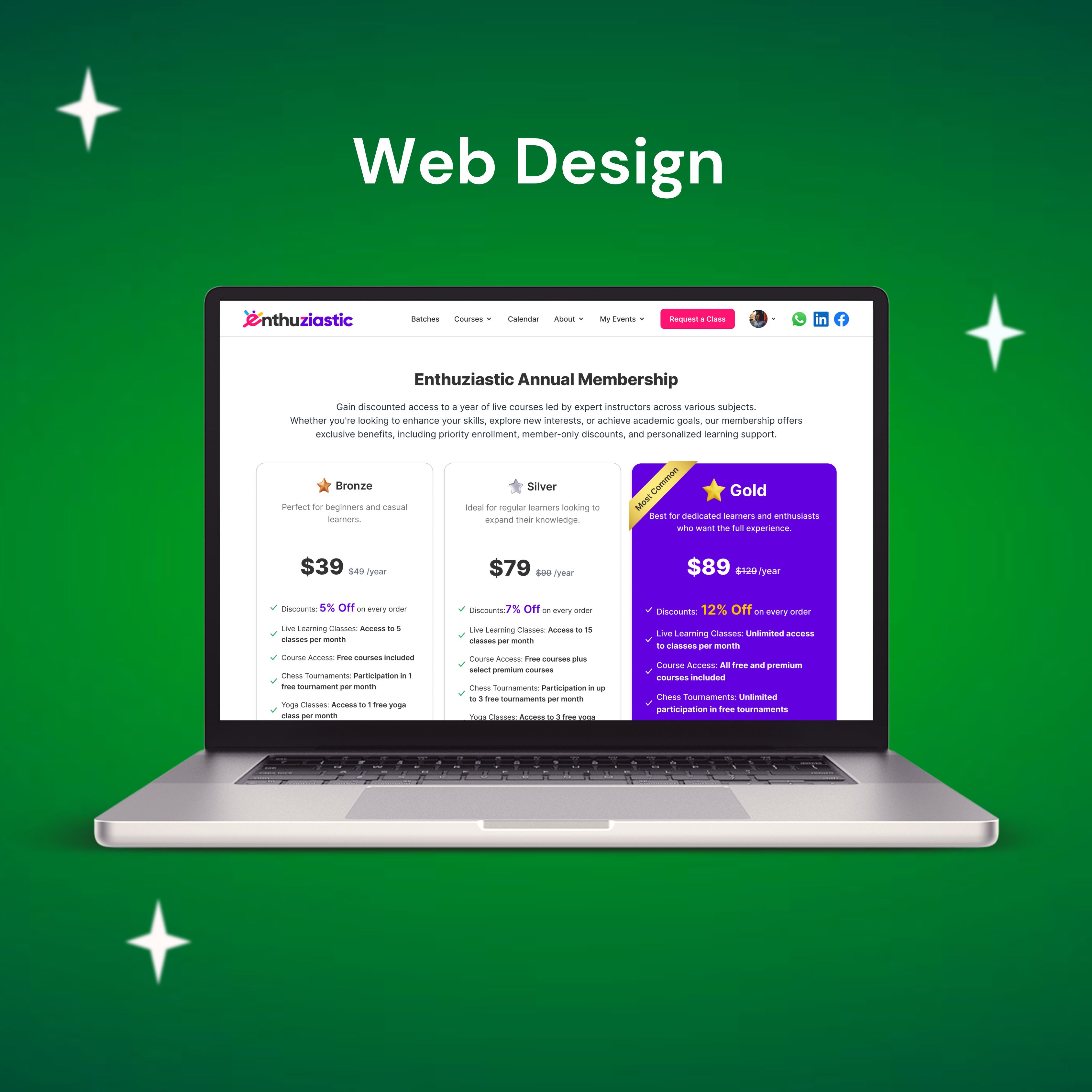 Membership UI design for EnthuZiastic to reduce manual sales effort and increase membership conversions with clear tiered plans and seamless user flow.