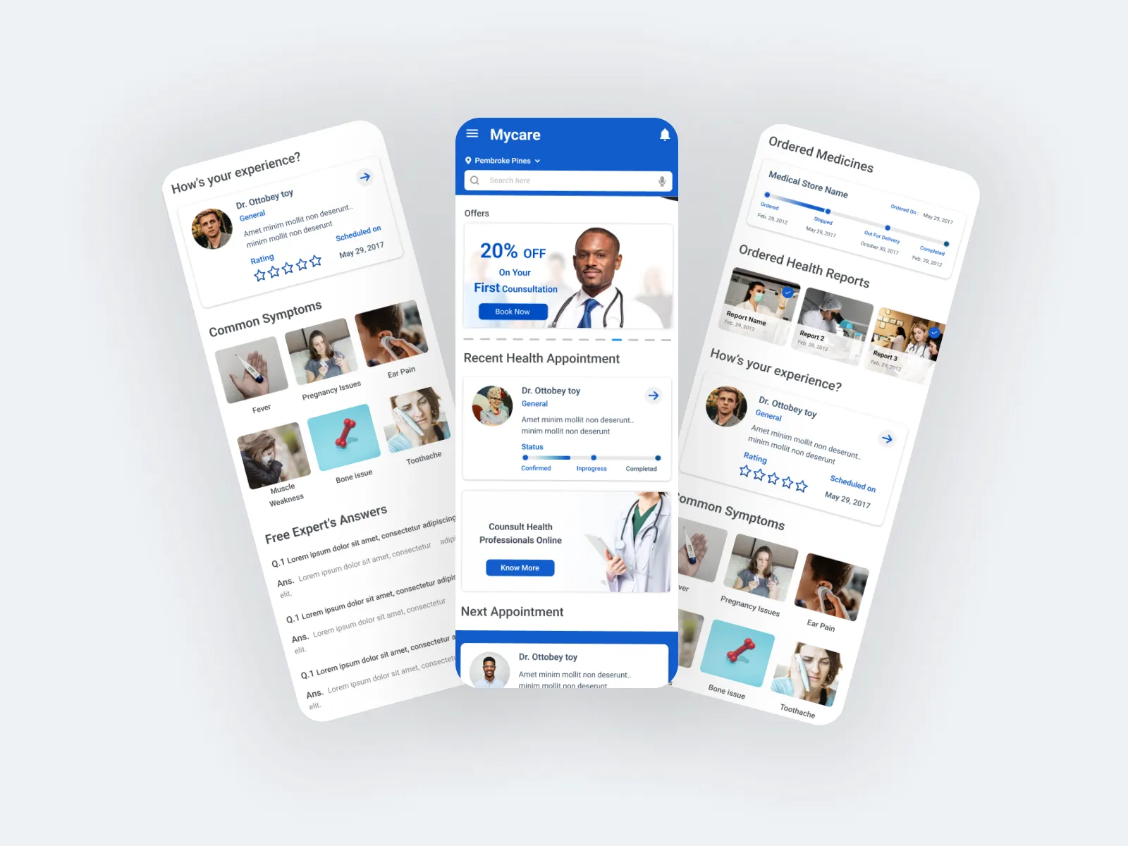 A UI/UX design for MyCare app that simplifies doctor discovery and appointment booking with intuitive navigation, clean visuals, and personalized healthcare access.